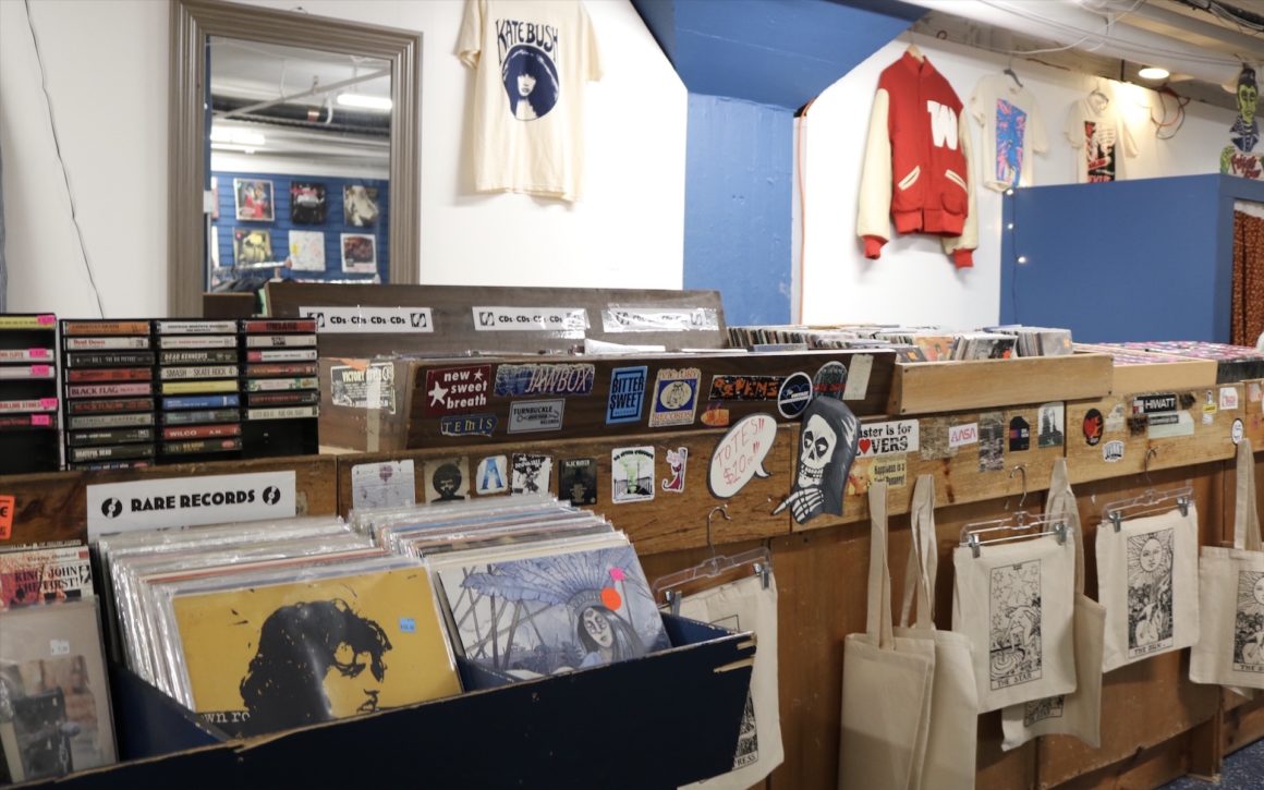 On the heels of In Your Ear’s departure from 957 Commonwealth Ave. last autumn, a new store called The Vintage Underground has moved in, bringing a fresh selection of music to the same well-worn basement space. The shop is the hybrid of existing local businesses Vivant Vintage and Cheapo Records, offering a “best of both worlds” stock that ranges from leather jackets and tarot-themed tote bags, to rare LPs, CDs, and rows of fashionable music memorabilia.