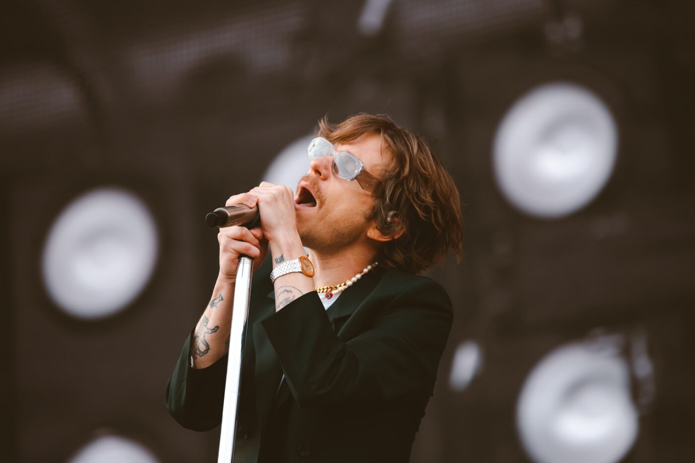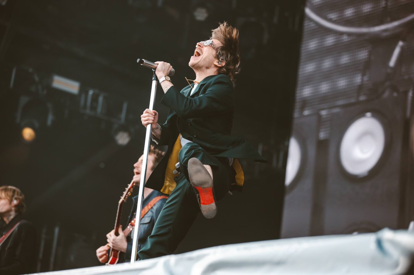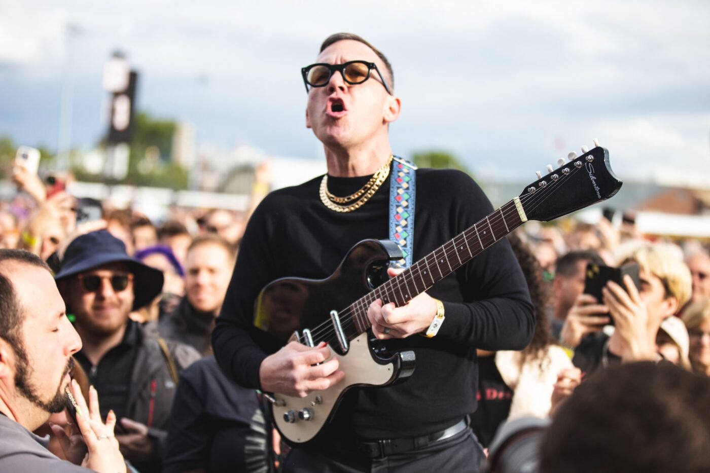 Editor’s Note: And on Day 2, there was sun — some of the time. The Saturday (May 24) performer slate at Boston Calling was one that spanned genres n’ decades, and after shaking off some early rain provided an eclectic mix of styles and sounds, from the raucous showing on the homegrown Orange Stage to a diverse display on the Allianz Blue Stage to indie and pop-punk royalty gracing the towering, floor-rotating, centrally-focused Green Stage. The tireless Brittany Rose Queen was all over the Harvard Athletic Complex snapping the action for Vanyaland; swipe across to view this photo gallery, with five select shots of each performance in keeping with this year’s V List theme, and scroll down for more as we document all that’s interesting and noteworthy at Boston Calling ’25.
