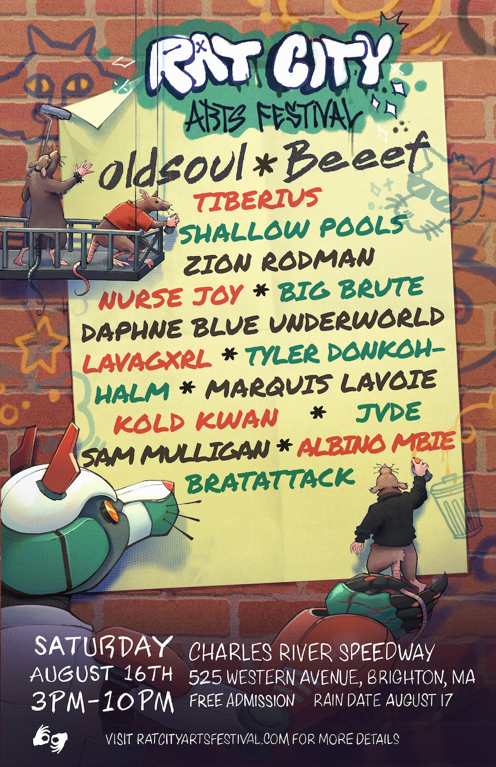 “This year, we’ll continue to accomplish what we’ve done for the past three years—championing our local artist community,” says Ricky Meinke, festival founder. “You will see more paid opportunities for our artists, more unique ways of highlighting our talented line-up, and additional efforts to address our pesky rat problem in Allston-Brighton through education and awareness.”